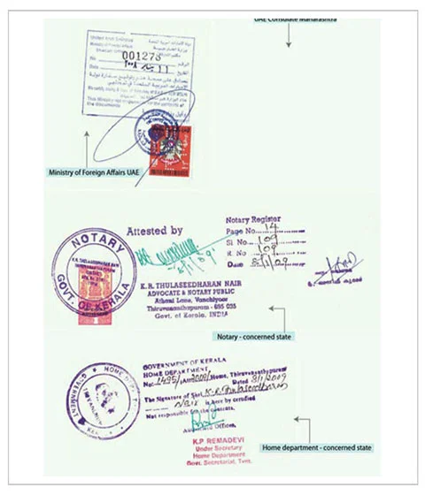 State HRD attestation is required before MEA attestation, where depending on the type of document, relevant state attestation is required. For example in case of educational documents, attestation from State Education Department is required. In case of personal documents, Home Department or General Administration Department of the concerned state should attest the document prior to attestation by the MEA.